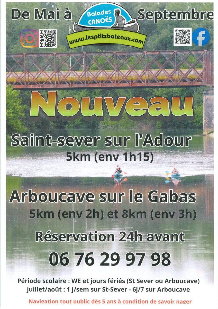 - Place:Balades en canoës sur le Gabas au départ d'Arboucave.