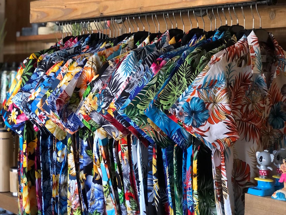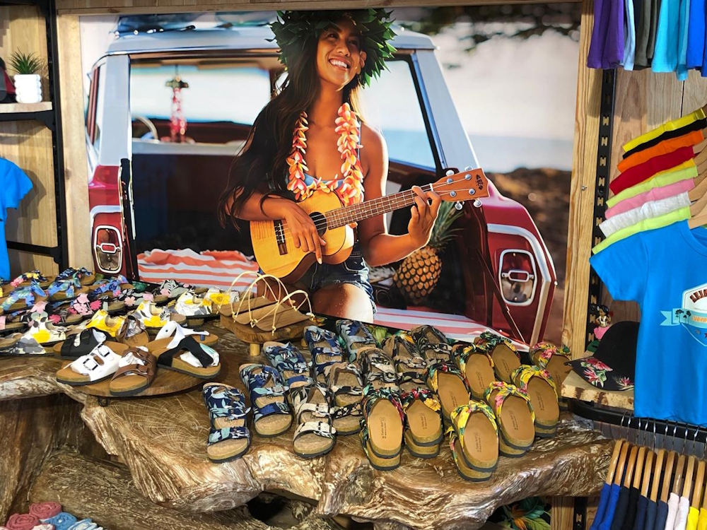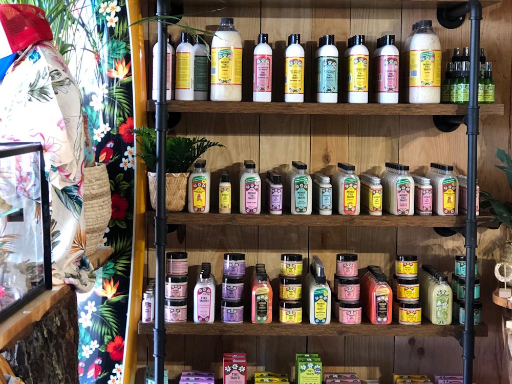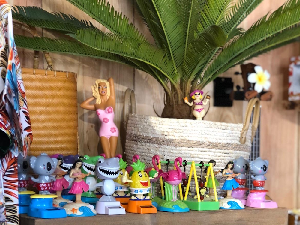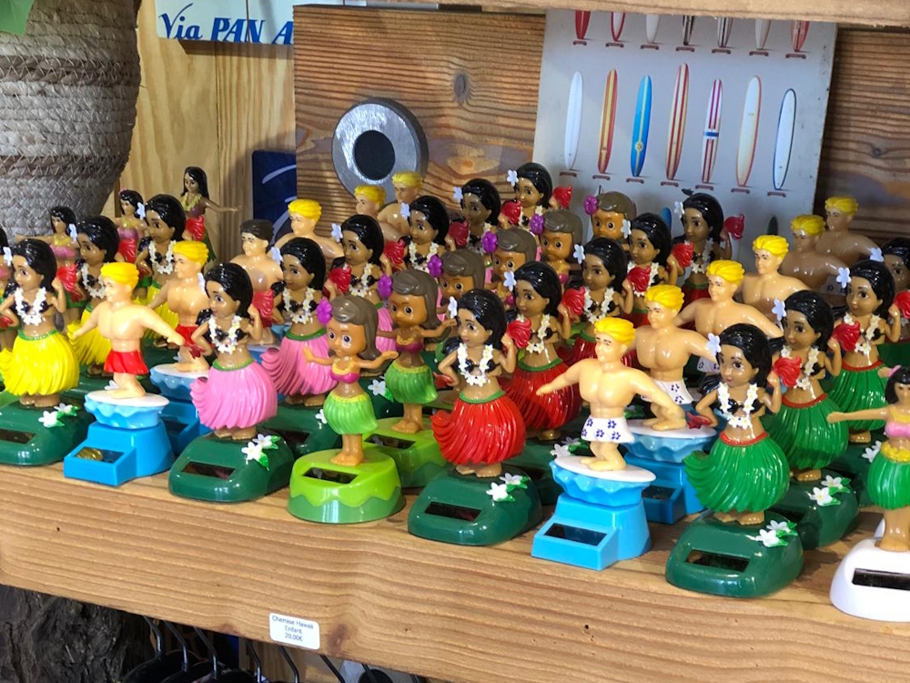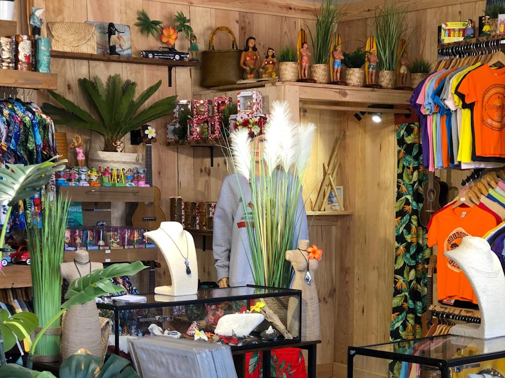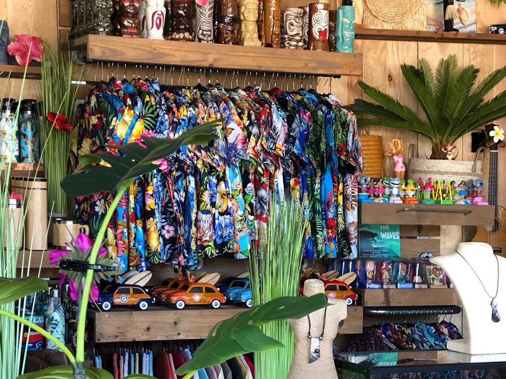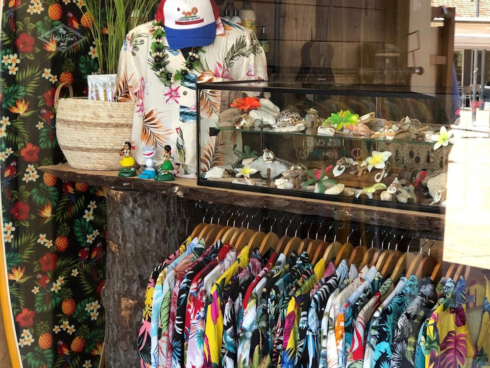 In our shop and on our website, you'll find a wide range of swimwear, beach towels, flip-flops, tee shirts by Landifornia and Vintage Island's, Vintage Hawaiian shirts, fabric from Hawaii, Tahitian pearl jewellery, monoi and sun cream, hair accessories, costume jewellery and various decorative items based on Surf, VW, Tiki and Vintage culture.