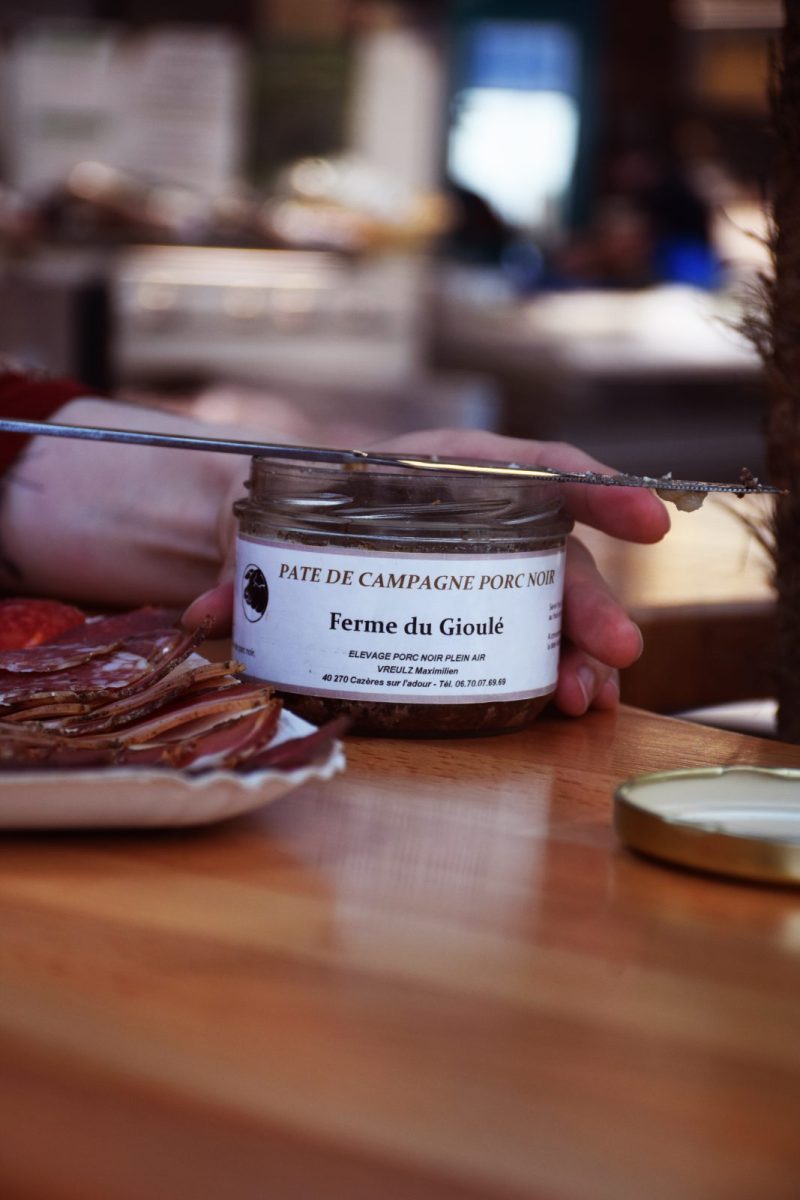 Farming black pigs in Cazères-sur-l'adour, Les Halles offers fresh produce and preserves, as well as charcuterie to eat in or take away.