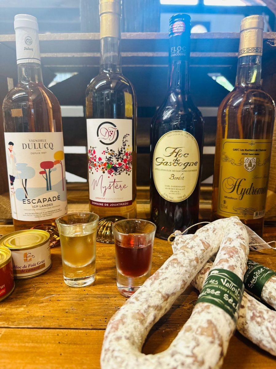 At the foot of the water tower in Vielle, they welcome you for a gourmet break and offer you a free tasting of their local products: Gascony wines, floc, armagnac, preserved duck and foies gras, honey and products of the hive, asparagus, organic pork, cheese, organic pastries, organic beef, organic regional groceries