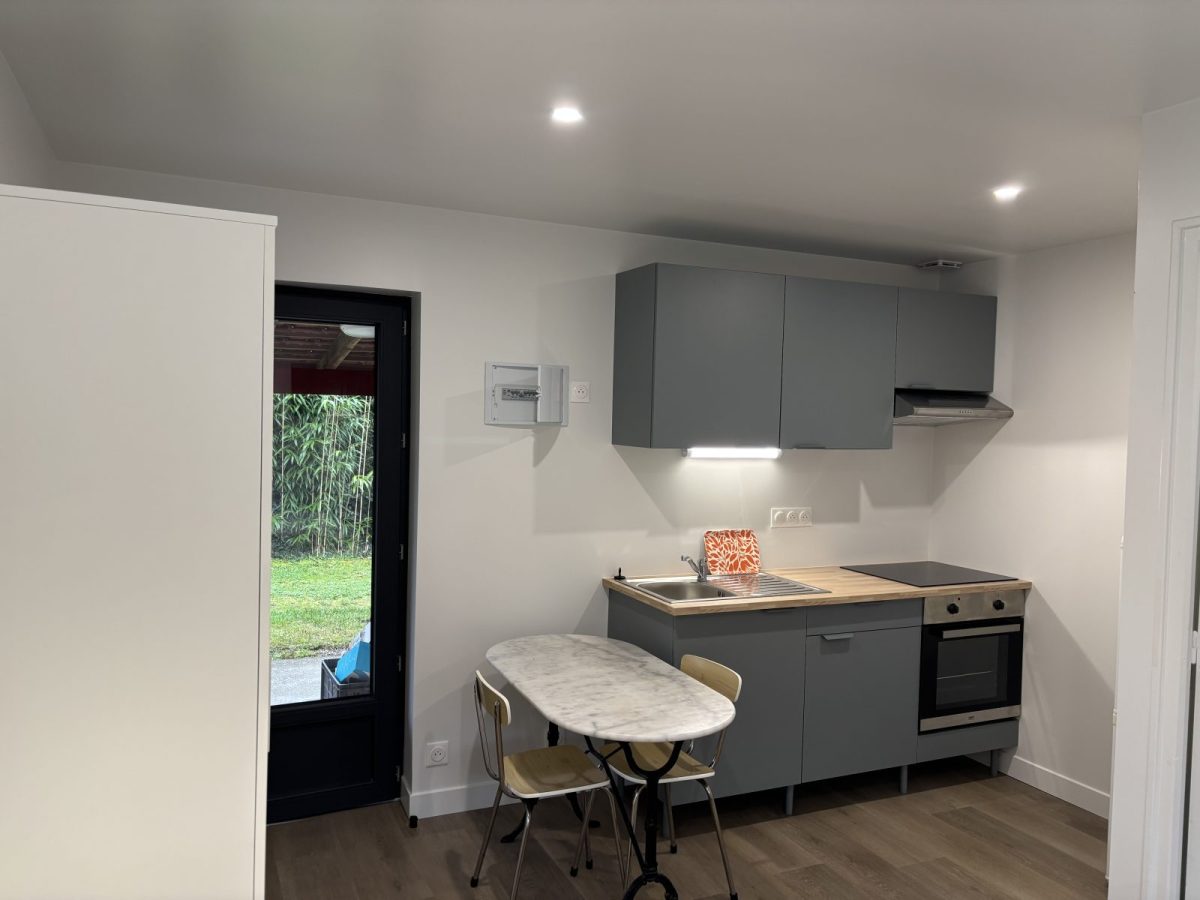 This gîte is a semi-detached apartment with exposed stone walls. The land is enclosed, providing security. The covered terrace offers a view on the flowered garden. The 2 studios together can accommodate 4 people in total.