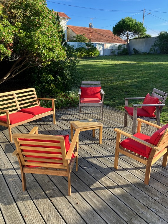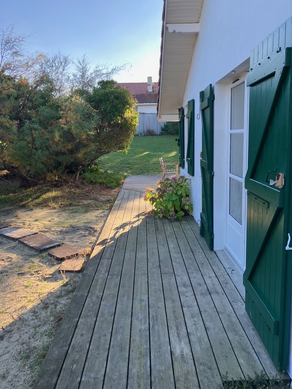 78 m² Landes vacation home surrounded by a terrace in a garden of almost 1000 m². It's ideally located in one of the town's most pleasant districts, 50 m from Remember beach, 100 m from the forest and 300 m from Mimizan-plage's shopping center.
