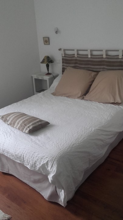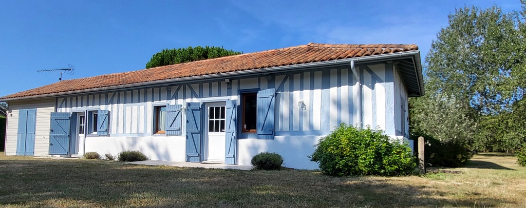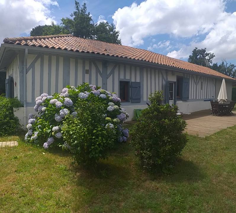 Come and rest in this charming Landes house located in grounds full of oak and pine trees. You will be in a peaceful setting, only 9km from the ocean. 75m2 3-bedroom house. The right-hand side of the house has 2 bedrooms (1 bedroom with a double bed (140cm) + 1 bedroom with 2x singles (90cm)), fully-equipped kitchen (gas cooker, microwave, fridge), living room (TV + DVD player), bathroom, separate toilet, plenty of storage space. A separate bedroom (studio) is located in the central part of the house: a double sofa bed (140cm), a kitchenette (with fridge, microwave), TV, bathroom with toilet, storage space. You will have access to 2 patios. Sheets, duvets and blankets are provided. Bathroom towels can be rented (10 euros per person). A cot, highchair and bathtub are available to rent. Rental of 3 bikes.