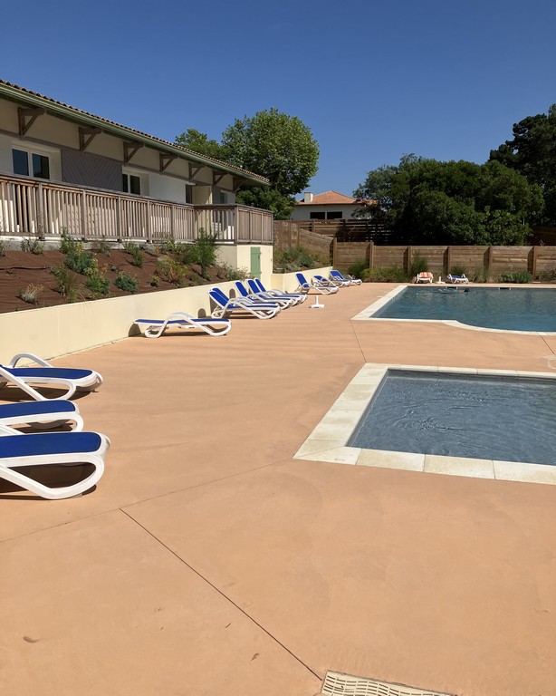 Secure residence: communal swimming pool, children's play structure, ping-pong table.