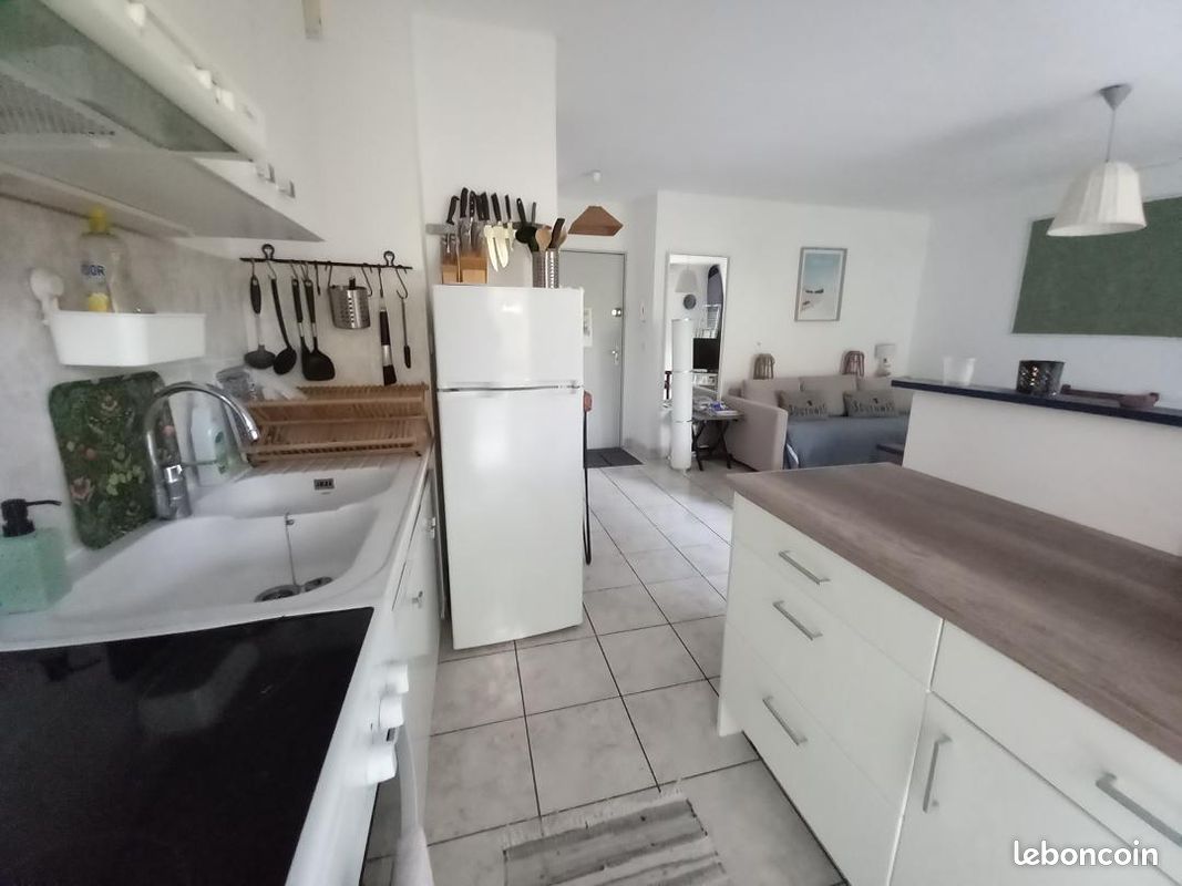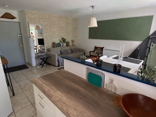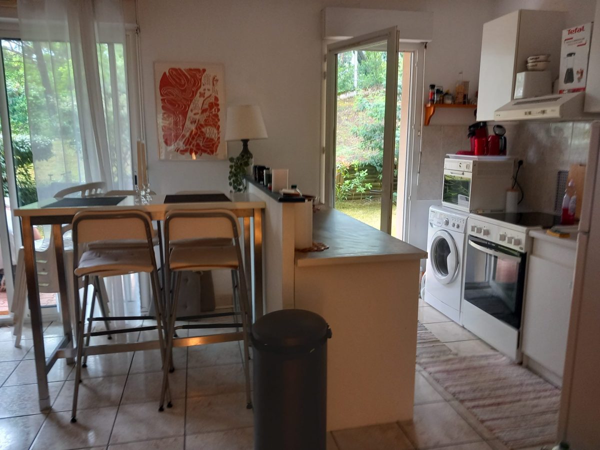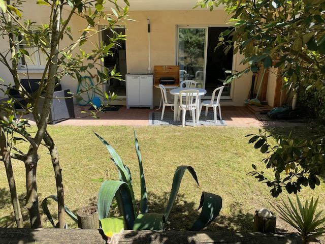 Charming T2 (45 m²) on ground floor, terrace and garden, ideally located in CAPBRETON's golden triangle; beaches, shops, CERS, port and surf spots on foot. Put your car down in the private parking lot of our small condominium, and enjoy CAPBRETON on foot or by bike: You'll be lodged among the pines, in a quiet, comfortable apartment, fully furnished and equipped with oven, vitro hob, microwave oven, washing machine, fridge/freezer, cupboards (no dishwasher). One bedroom, with electric beds, dressing cupboards, office area (for telecommuting), bathroom (bathtub), separate WC. Entrance with cupboard. Not overlooked. Capacity: a couple with 1 or 2 children (sofa bed in living room and 2 electric beds 70x190 in bedroom). PARKING space available in front of the residence.