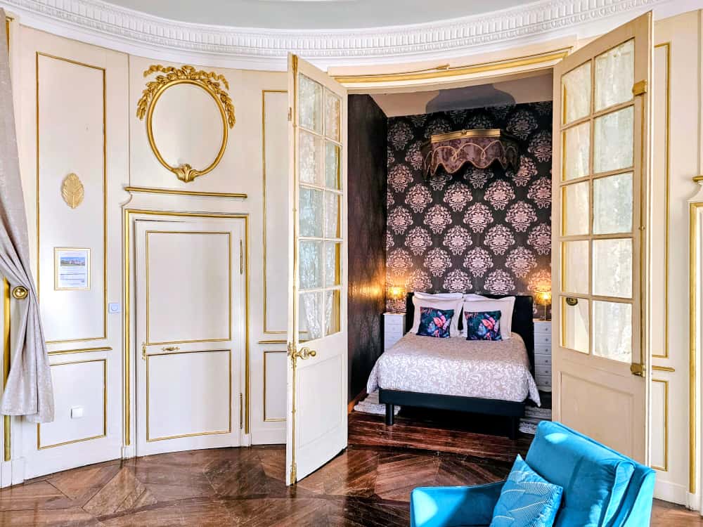 The "La Royale" room will take you back in time, with its decor and architectural features reminiscent of one of the suites at the Château de Versailles. With a surface area of 40m² (including 1 double bed and 1 sofa-bed), it is said to have been designed to accommodate Napoleon III in the village.