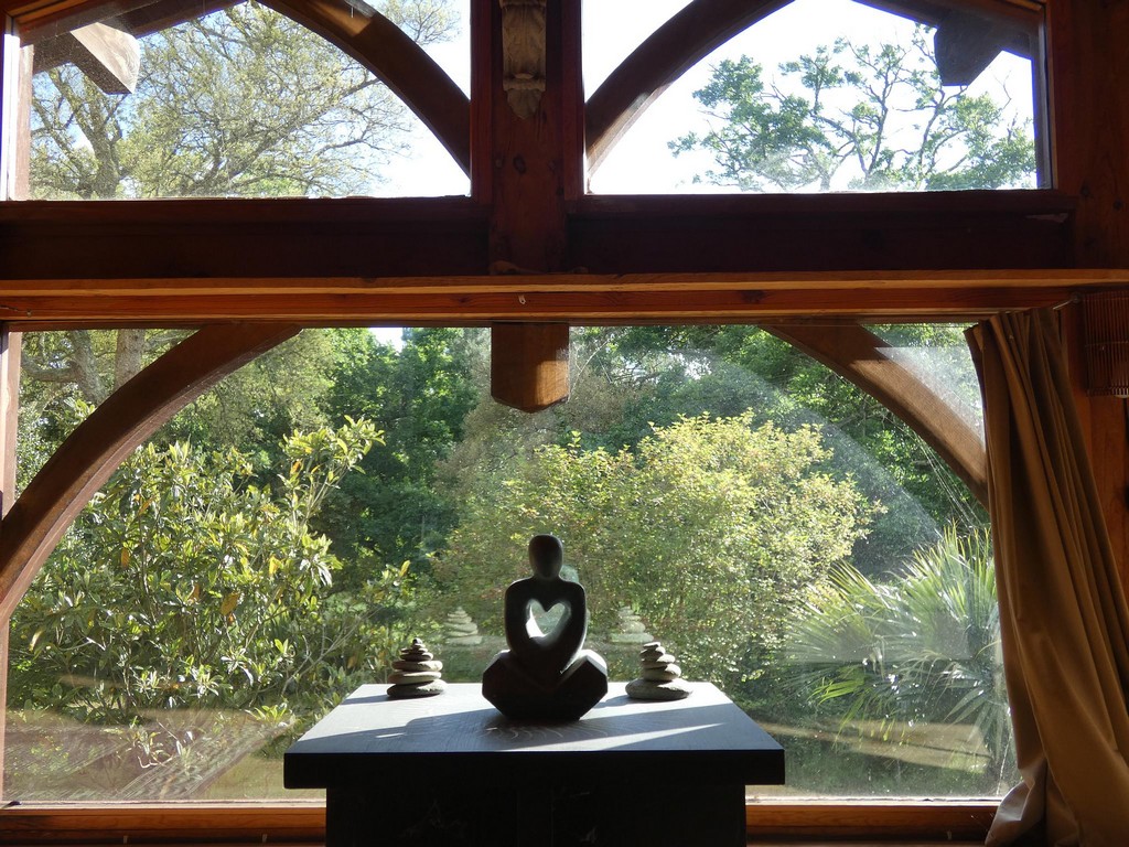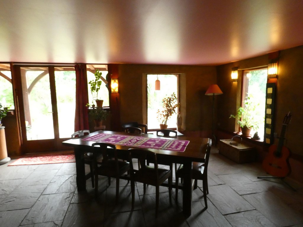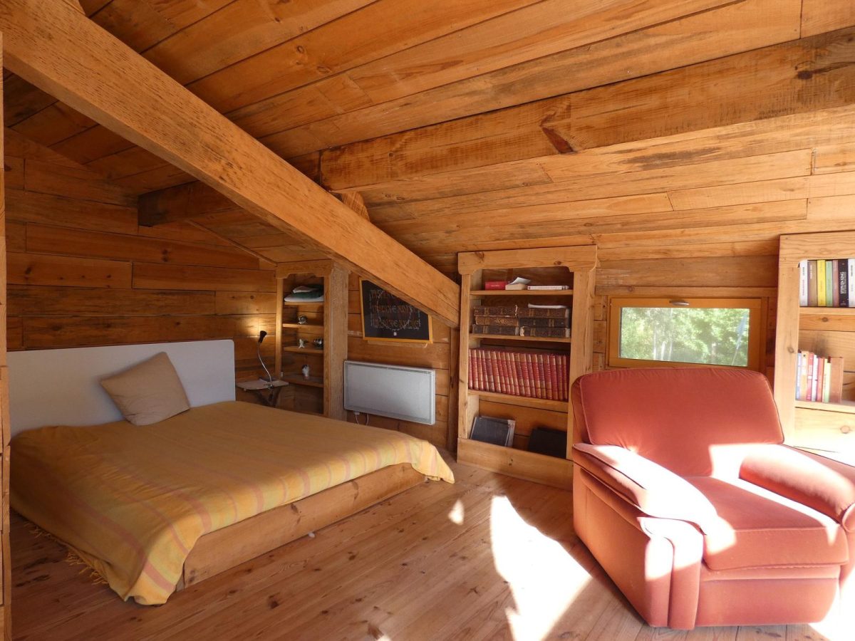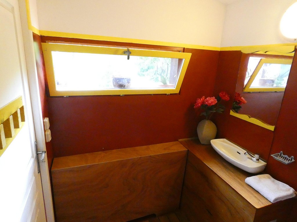 The other 2 bedrooms are upstairs. The first (bedroom B) has a double bed, a single bed and a crib. It's a suite of 2 interconnecting bedrooms. The second (room C), with private bathroom and study, has a double bed and 2 single beds. It features a large bay window running the full length and height of the room. It boasts a breathtaking view.