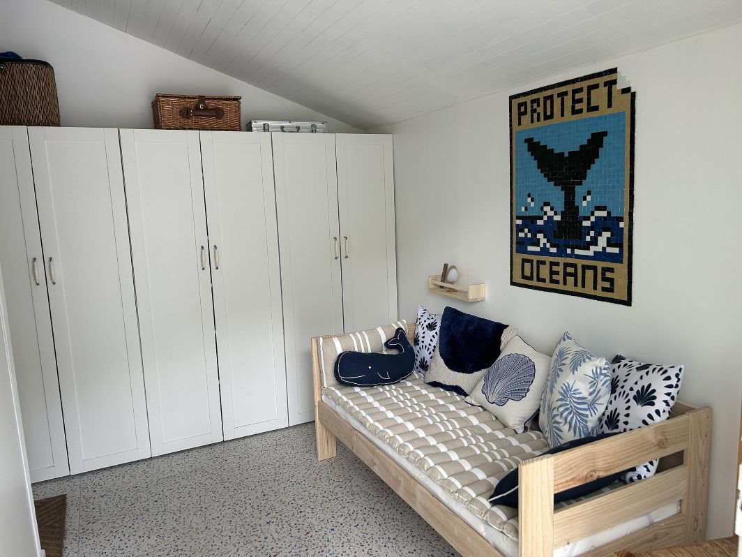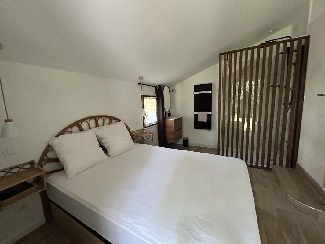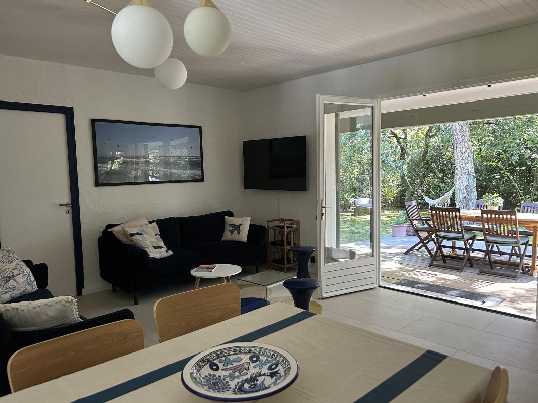 the living room opens onto the terrace and garden, and includes a fully-equipped open-plan kitchen.