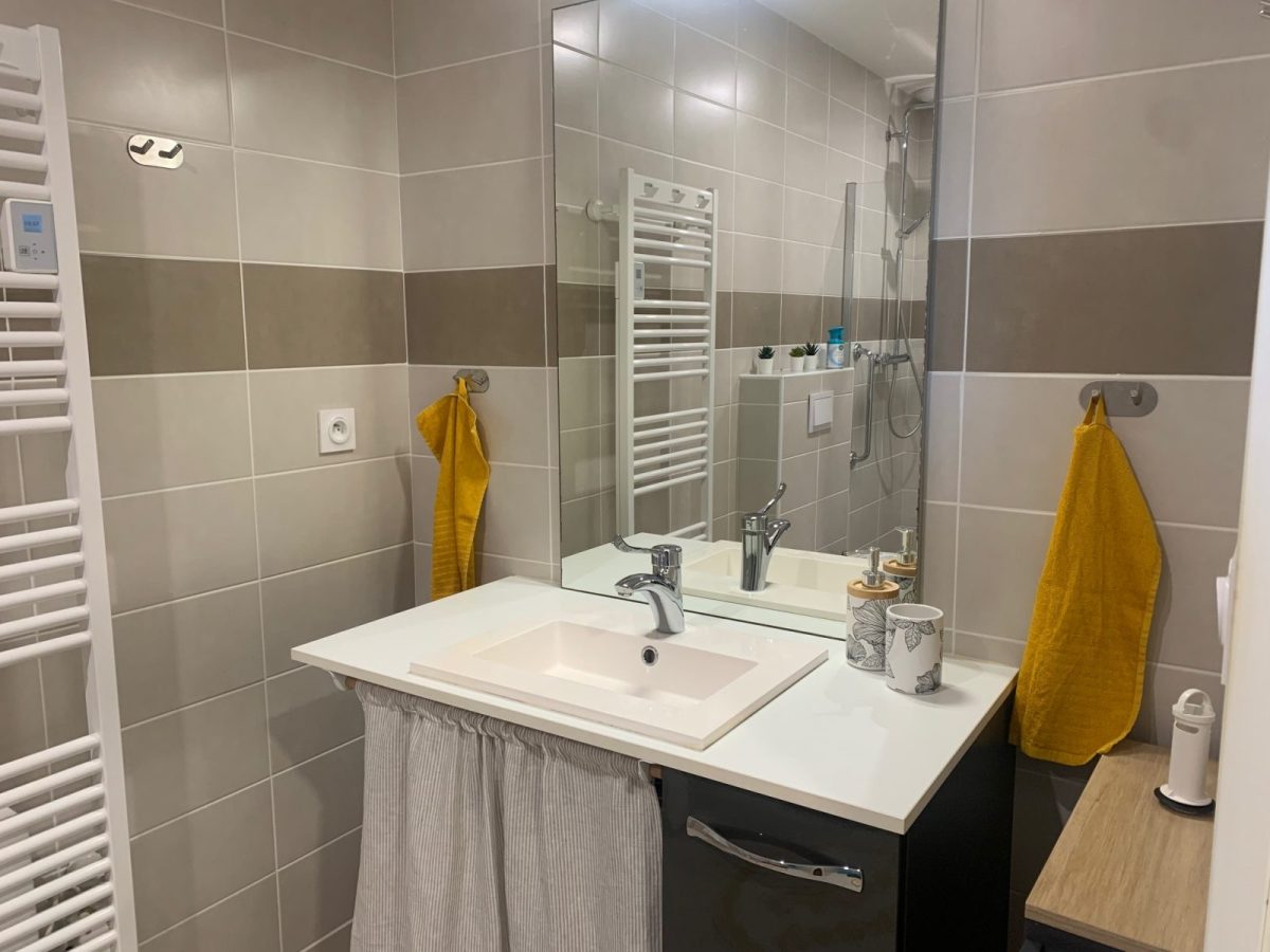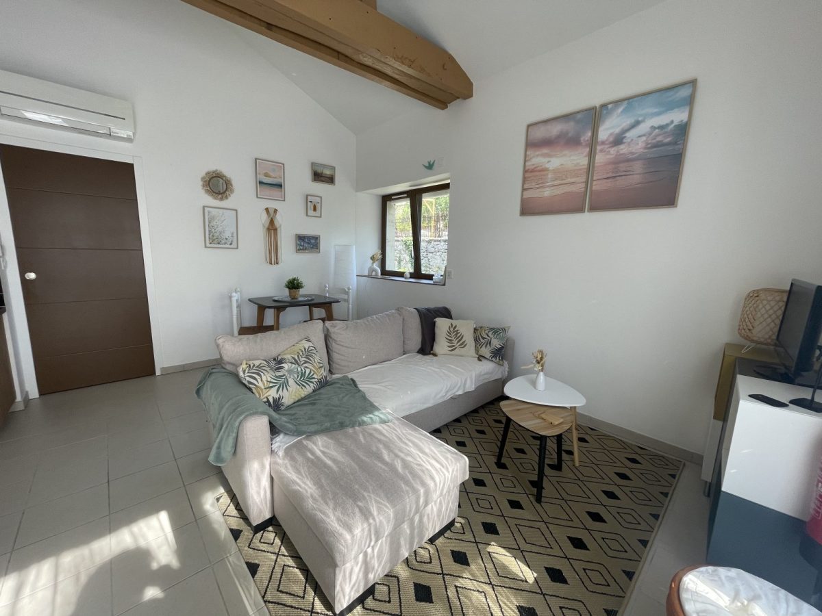 Fully equipped and PMR-friendly, this single-storey apartment comprises a living room with open-plan kitchen, a bedroom for 2 people, and a bathroom with shower and toilet.