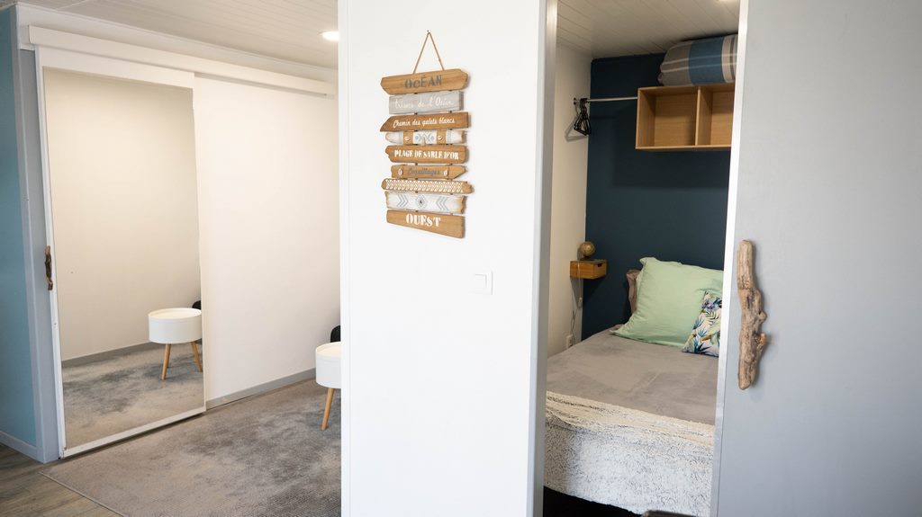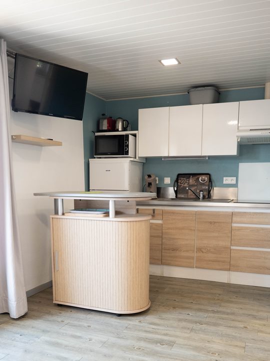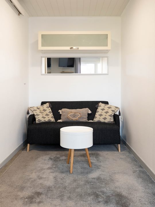 Air-conditioned studio flat to sleep 2 to 4 guests, alcove bedroom with double bed (160 cm) or 2 single beds (80 cm), private patio and car park. There’s a barbecue, sunbeds and games for you to enjoy our sunny garden.
