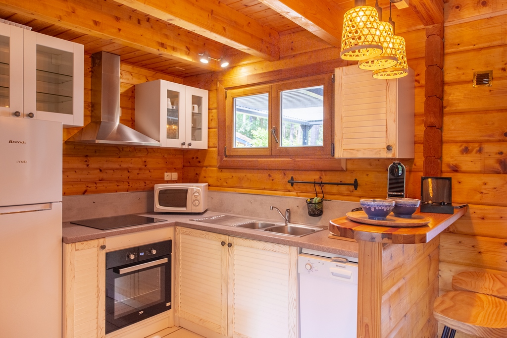 Ground floor: a large room with kitchen and living room with pull-out sofa, toilet and shower room.