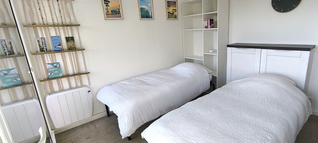 On the 4th floor of a residence with elevator, this apartment is ideal for 2 people. The configuration with 2 single beds can accommodate all our guests: couples, friends, parents/children.