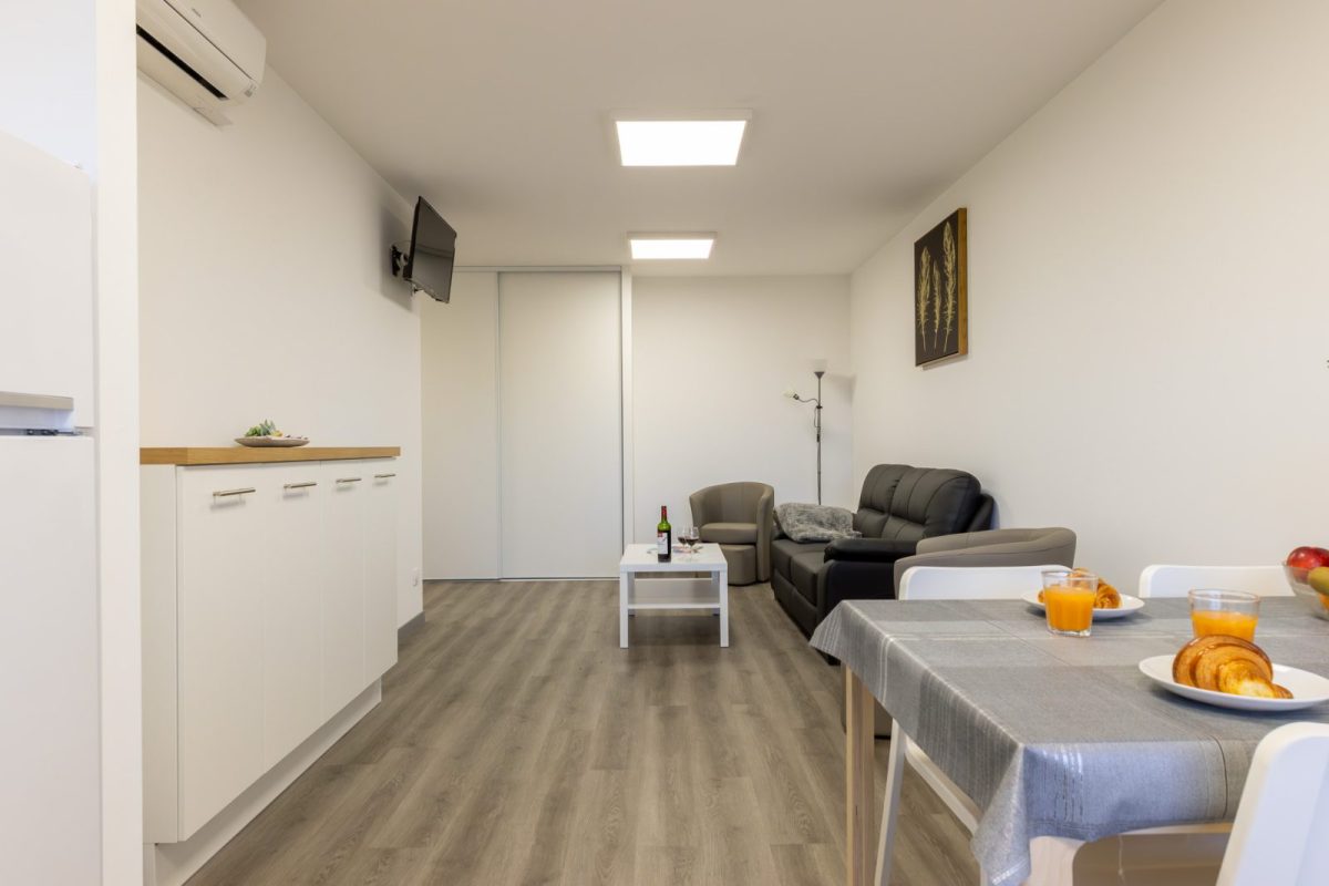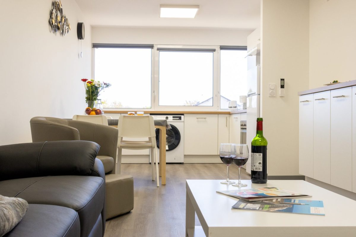This brand-new T2 apartment, rated 3*, is located on the 1st floor with elevator, and is decorated with care and adapted for disabled people. It offers every comfort for a pleasant stay.