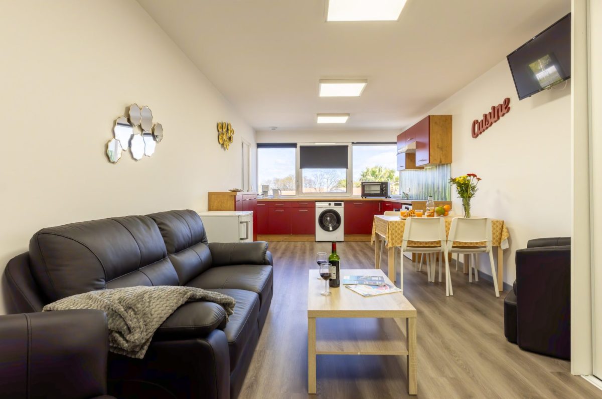 This brand-new T2 apartment, rated 3*, is located on the 1st floor with elevator, and is decorated with care and adapted for disabled people. It offers every comfort for a pleasant stay.