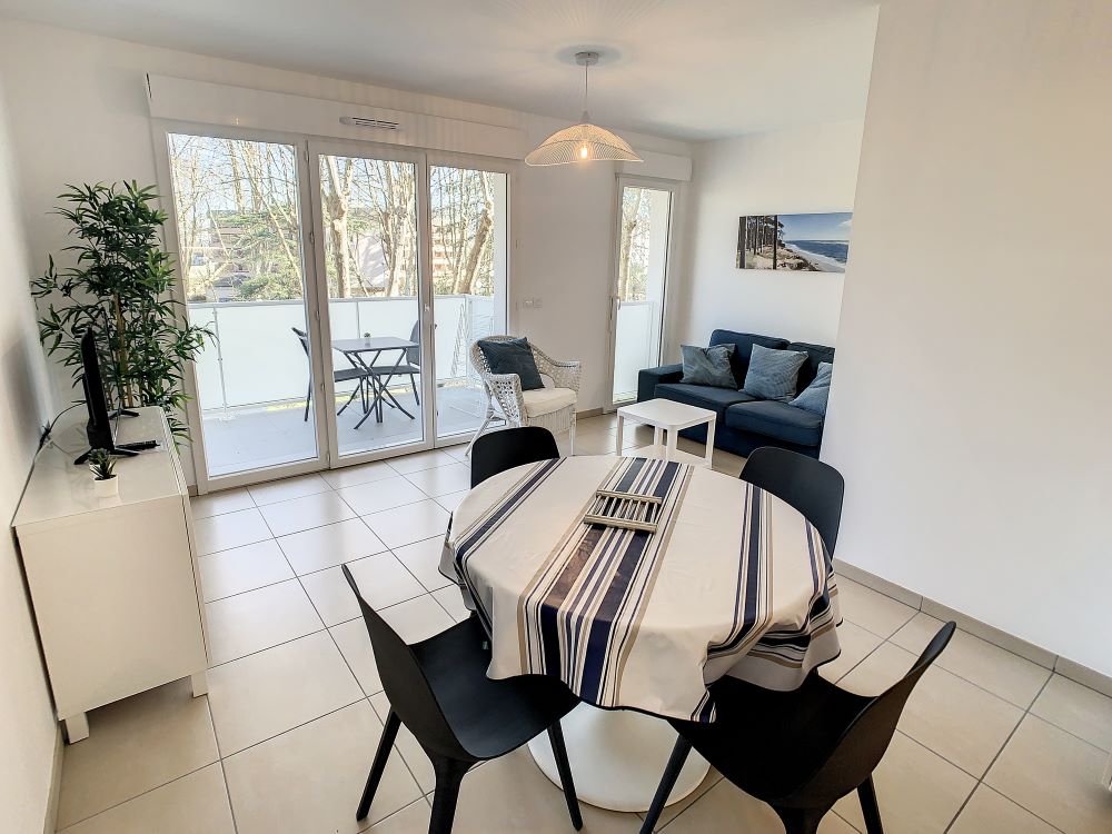 In an attractive, recent, quiet and secure luxury residence, set in a wooded park, close to the town center and health establishments, this 3-star-rated, 43m² T2 apartment, plus 9 m² terrace not overlooked, is located on the 3rd floor with elevator and comprises: