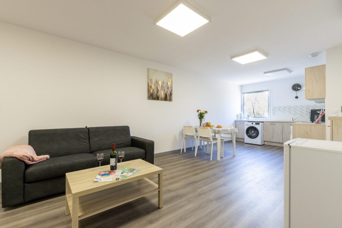 This brand-new T2 apartment, rated 3*, is located on the 1st floor with elevator, and is decorated with care and adapted for disabled people. It offers every comfort for a pleasant stay.