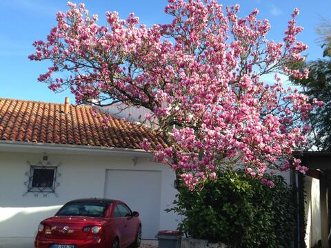 You'll enjoy a private garden with trees, table, deckchairs, plancha and parasol, ideal for relaxing after treatments.