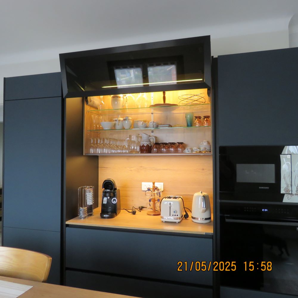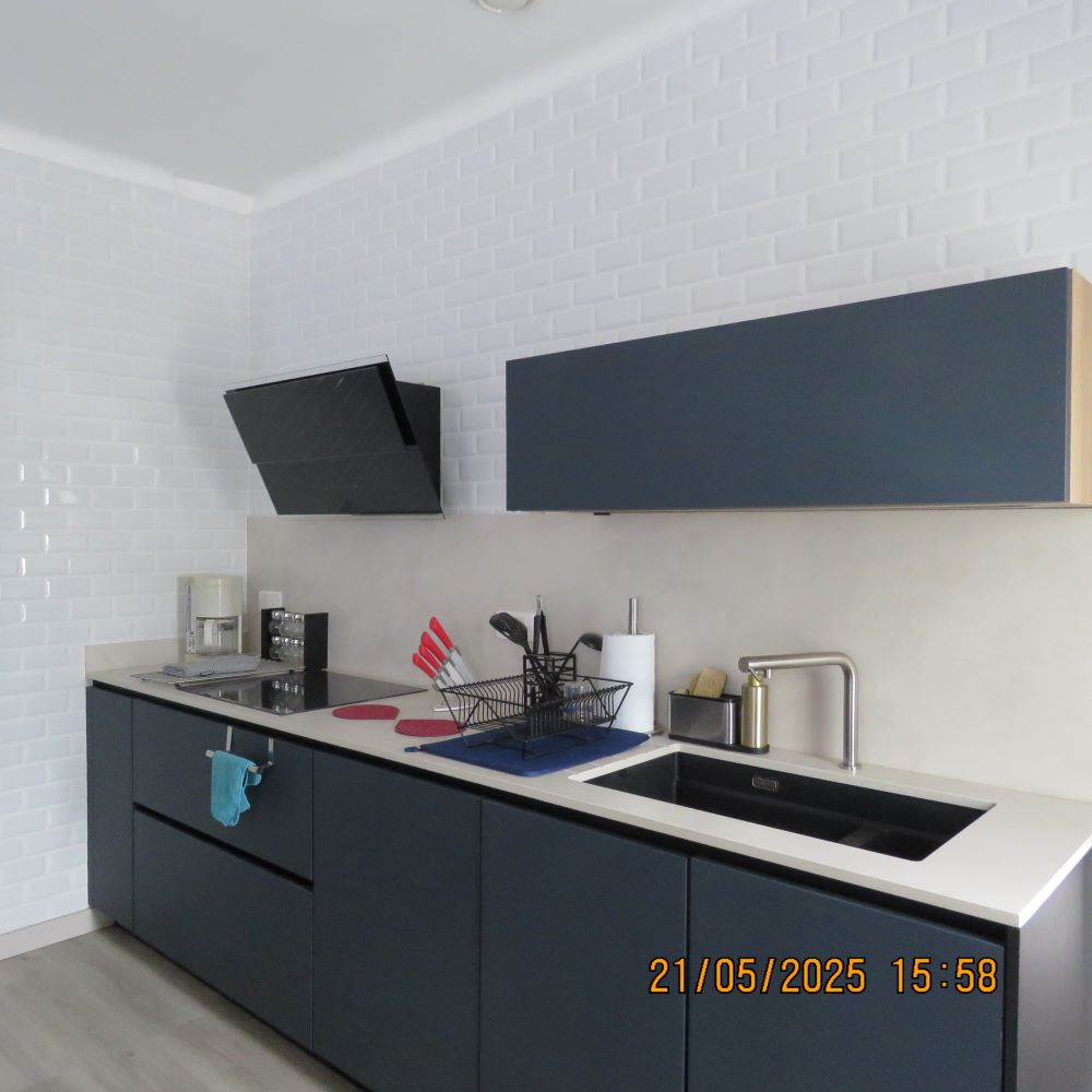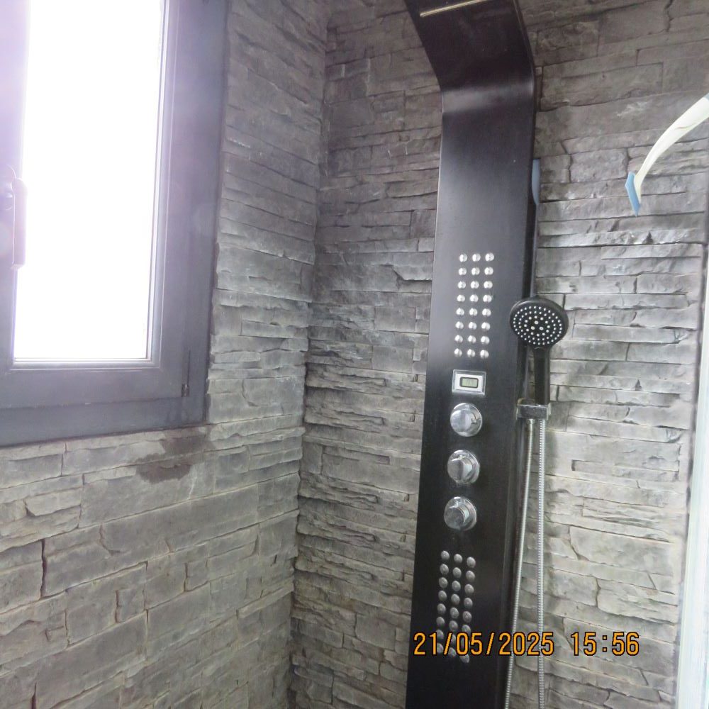 Living room 25 m2 communicating with kitchen 20 m2. Fireplace. Bathroom with shower, separate WC.