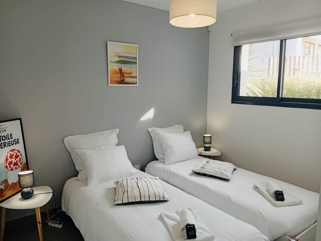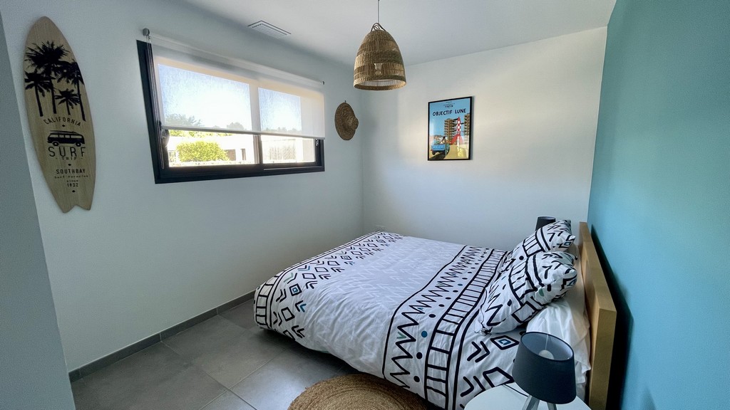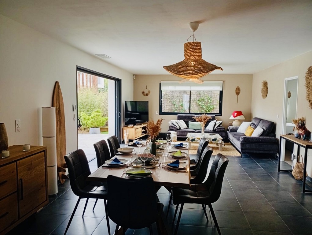 Welcome to Villa Alaïa in Moliets Plage, a comfortable, fully air-conditioned villa located in a quiet area just 400 m from the central beach and the ocean. Ideal for a vacation between sea and forest, the house is within easy reach of the famous Vélodyssée cycle path through the pines. Nearby, discover the 18-hole golf course at Moliets, the descent of the Huchet stream, or the accrobranche (tree-climbing) courses. A 3-minute walk from Place de la Balise and Place de la Bastide, where you'll find shops, bakeries, restaurants, bars and surf shops. Spacious, bright and decorated in a seaside spirit, the villa offers a large living room opening onto a terrace for pleasant indoor-outdoor living. You'll enjoy an enclosed garden with heated swimming pool, sun loungers, plancha and pétanque court. Everything you need for an unforgettable vacation by the ocean.
