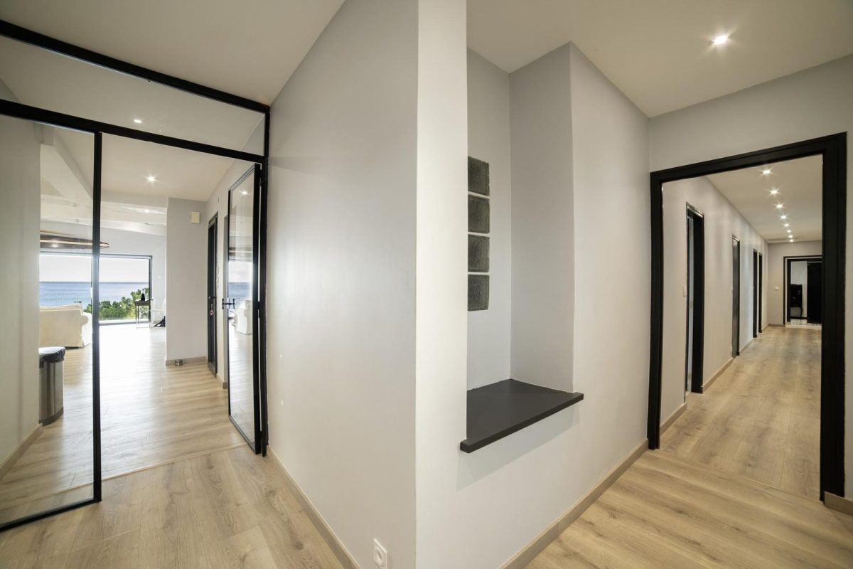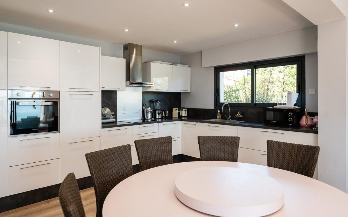 Vast 52 m² living/kitchen area with huge bay window facing the lake, 70 m² terrace with panoramic lake view, 4 bedrooms with bay windows overlooking the lake and 4 shower rooms, 5 WCs, 1 laundry room. Fully equipped kitchen, electric roller shutters, TV with video projector.