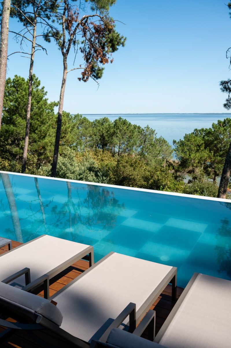 Air-conditioned 200 m² villa for 8 people, fully renovated in 2019 on 2000 m² private garden. 17 m long infinity pool. Lake access at the foot of the garden, beach and pontoon with possibility of renting 1 motorboat or 1 sailboat.