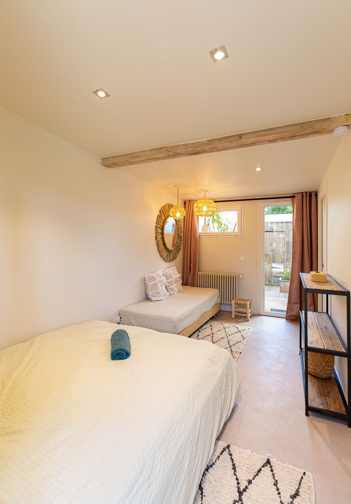 Our home includes several spacious rooms for two, three, four, five or even six people. You can choose from bunk beds, single beds or double beds. High-quality mattresses guarantee a good night's sleep after an active day. Two rooms share a bathroom, while all other rooms have their own bathroom.