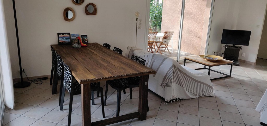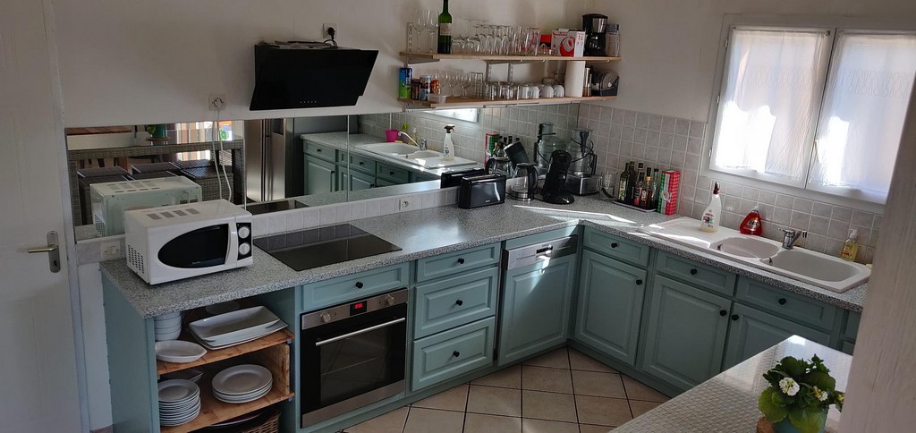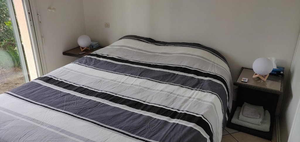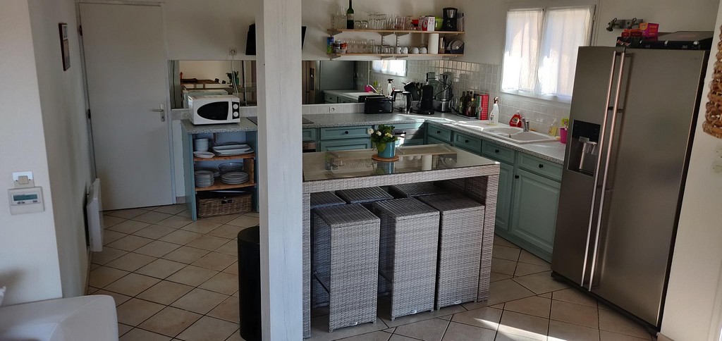 Fully furnished and equipped with recent contemporary furniture, very good quality bedding, open kitchen (American fridge, dishwasher) on living room 45m2. Living room open on a covered terrace.
