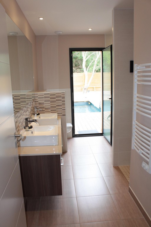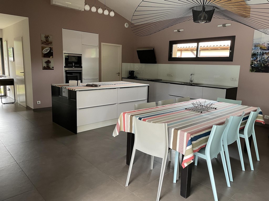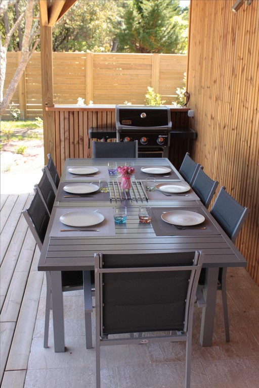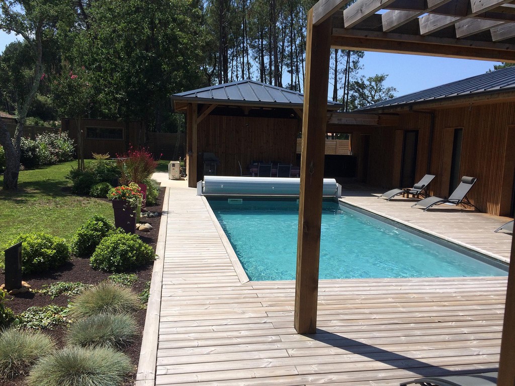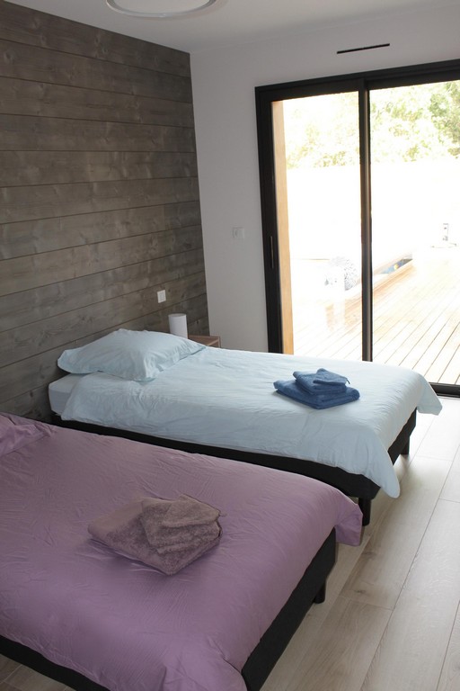 The house is built around a large wooden terrace and the swimming pool which is heated during the summer season. This one is equipped with an electric shutter in conformity with the safety standards. All the rooms overlook this relaxing space. The pool house will offer you a shaded space at the water's edge to enjoy the long summer days. Bed linen and towels are provided. At your disposal a cot with mattress, high chair and small bathtub.