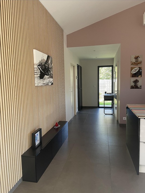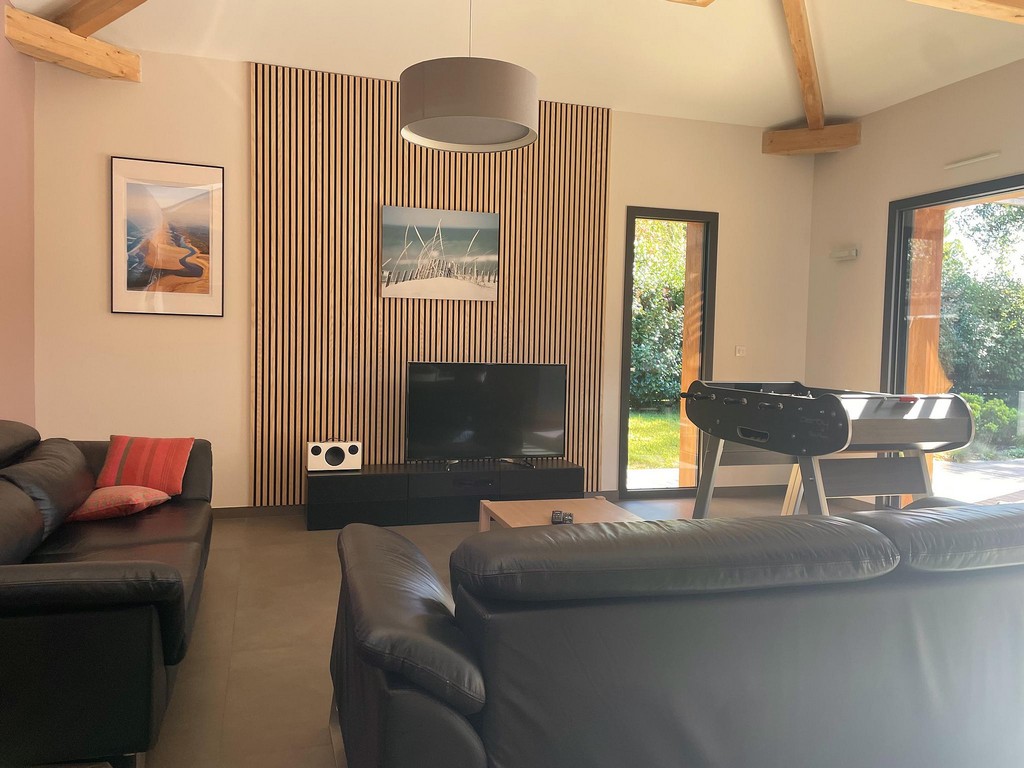This villa completed in August 2014, is ideally located in the town of Moliets. Outside the subdivision, quiet, on a plot of 1250m2 fully fenced, it is 2km from the beaches and the international golf of Moliets. It is close to all the shops (bakery, grocery store, butcher's shop, tobacco press...) and along the bicycle path.