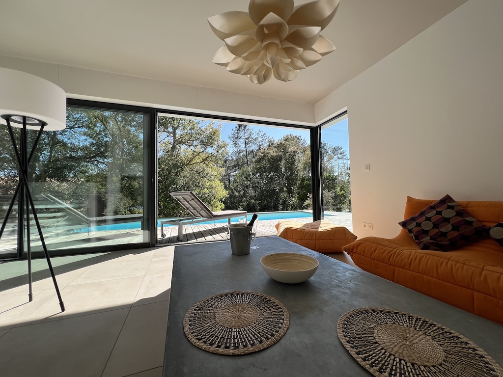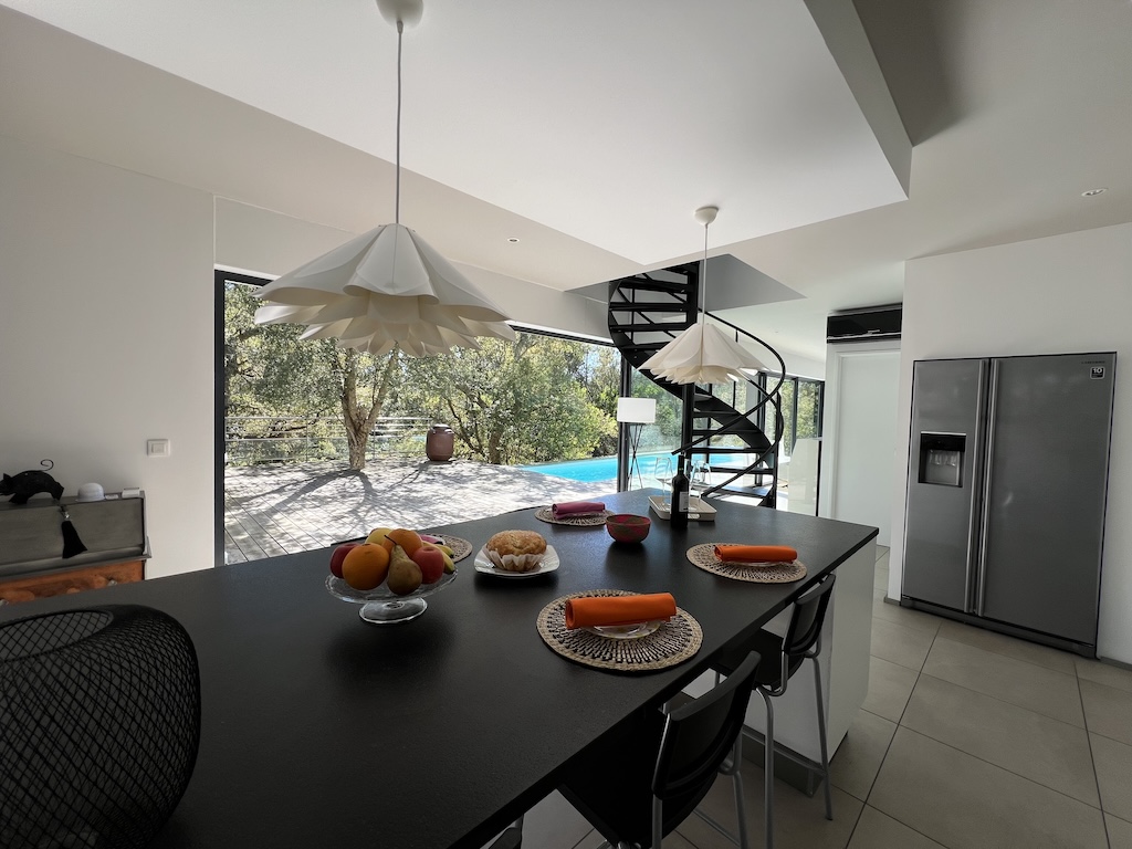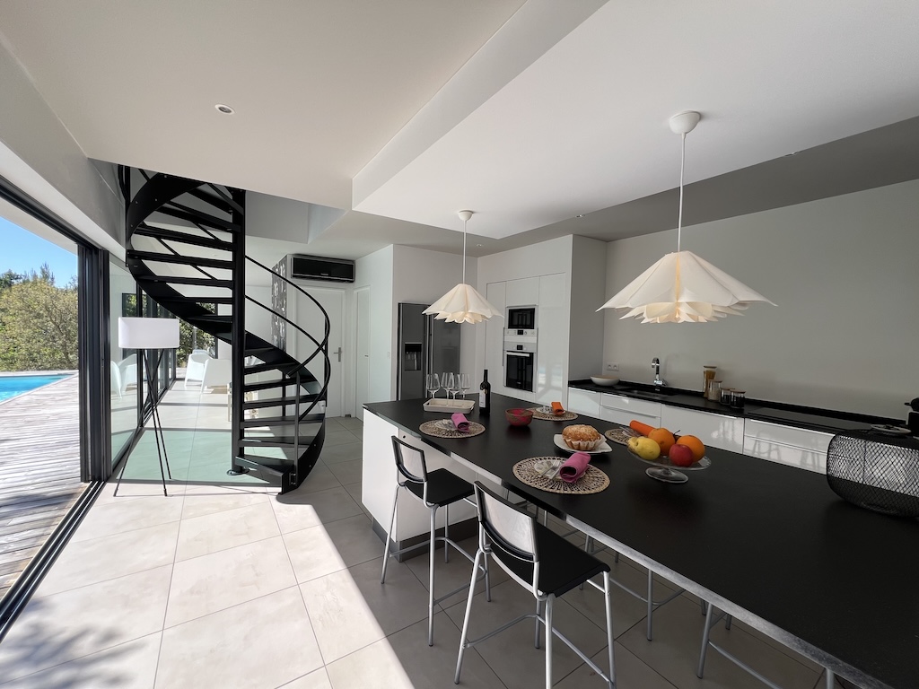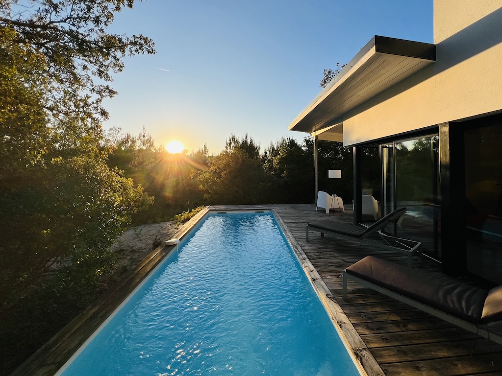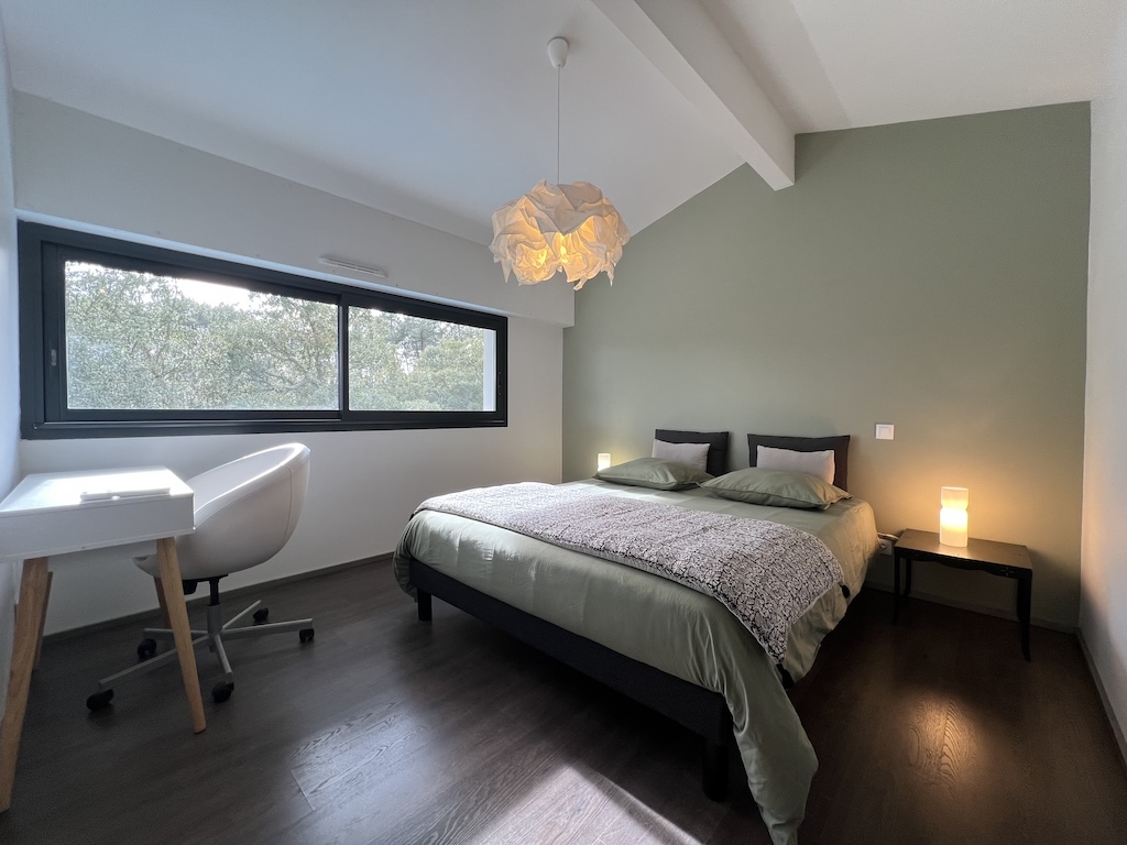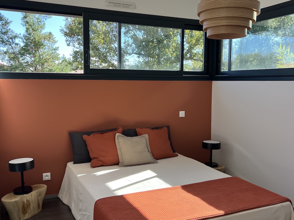 Spanning around 120m² on two levels, Villa Stelna features two elegant bedrooms on the ground floor, a modern shower room, a fully-equipped kitchen and a cosy living room. The living space opens to the south through large bay windows, bathing the house in natural light and offering panoramic views of the pool and garden. Upstairs, two large bedrooms with dressing rooms each have their own private bathroom, guaranteeing privacy and comfort for each occupant. Fully air-conditioned, the villa is equipped with electric roller shutters in all rooms, for optimum comfort. You'll be seduced by its sleek design, quality materials, refined decor, exceptional luminosity and conviviality of space. All set in a 1,100 m² garden, offering calm, authenticity and a change of scenery.