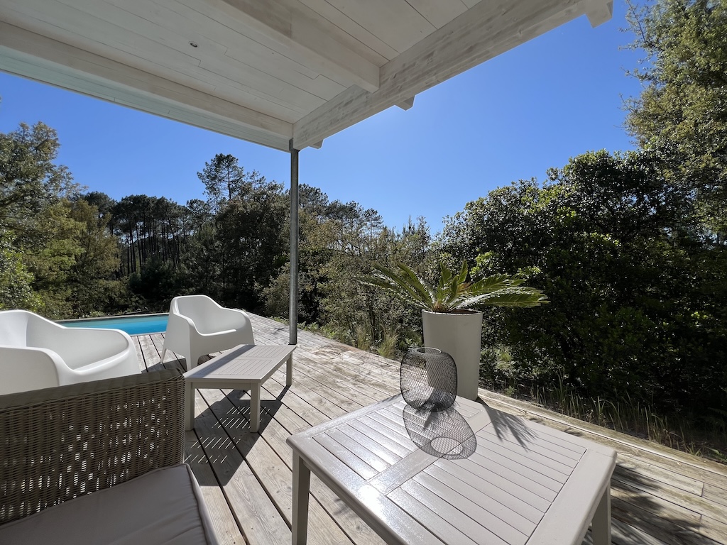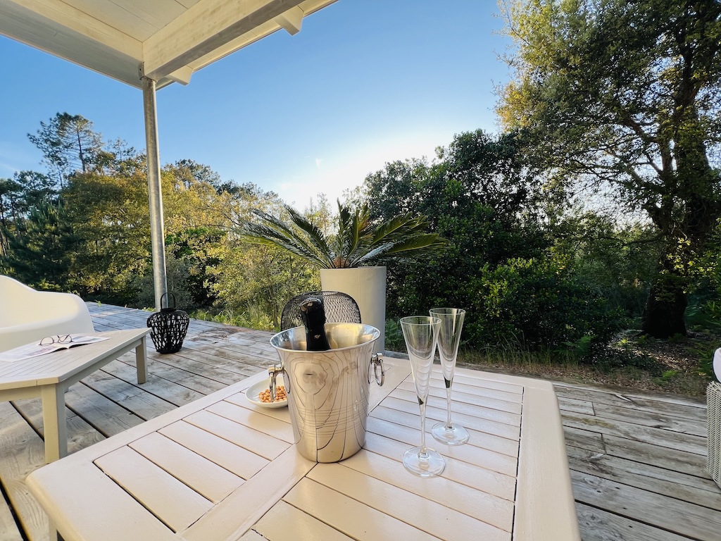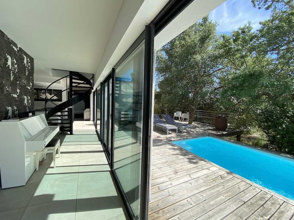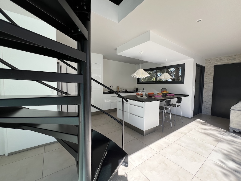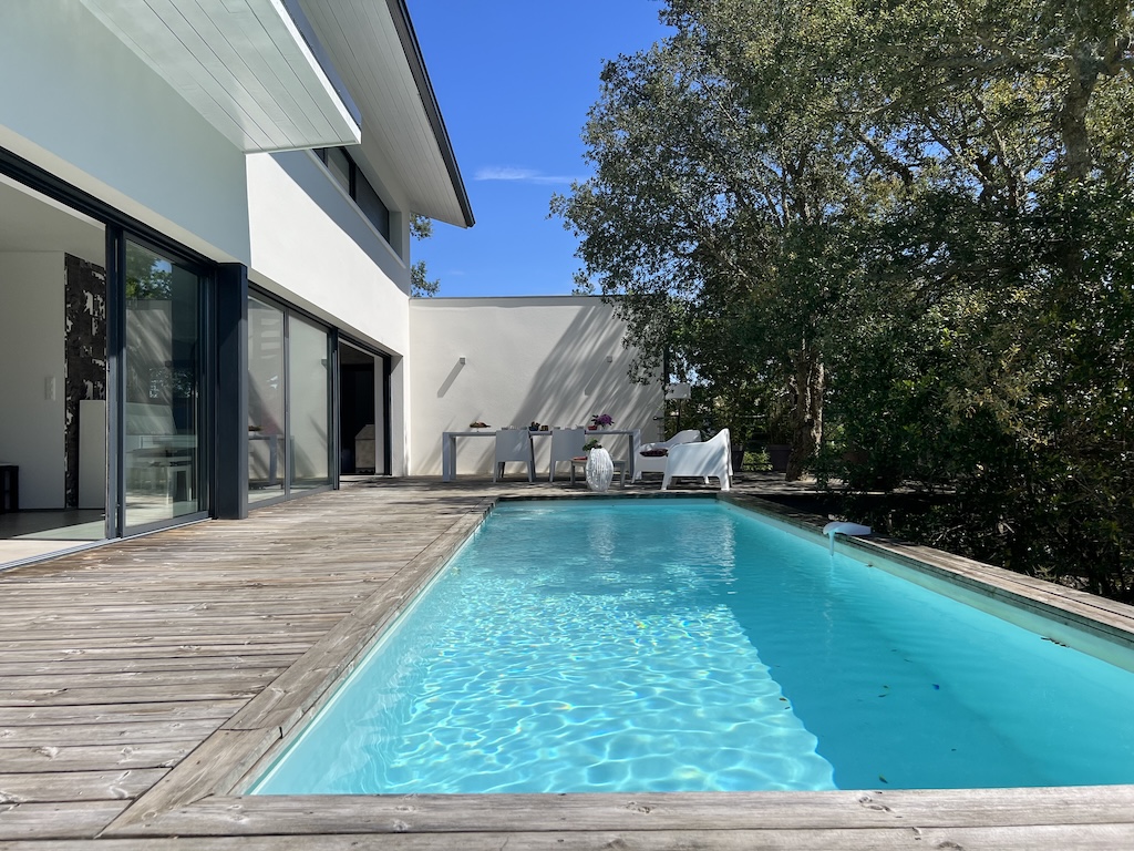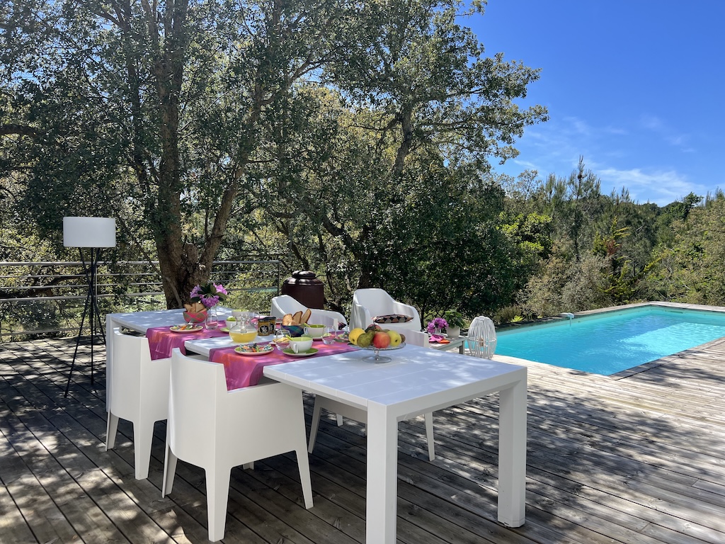 Spanning around 120m² on two levels, Villa Stelna features two elegant bedrooms on the ground floor, a modern shower room, a fully-equipped kitchen and a cosy living room. The living space opens to the south through large bay windows, bathing the house in natural light and offering panoramic views of the pool and garden. Upstairs, two large bedrooms with dressing rooms each have their own private bathroom, guaranteeing privacy and comfort for each occupant. Fully air-conditioned, the villa is equipped with electric roller shutters in all rooms, for optimum comfort. You'll be seduced by its sleek design, quality materials, refined decor, exceptional luminosity and conviviality of space. All set in a 1,100 m² garden, offering calm, authenticity and a change of scenery.