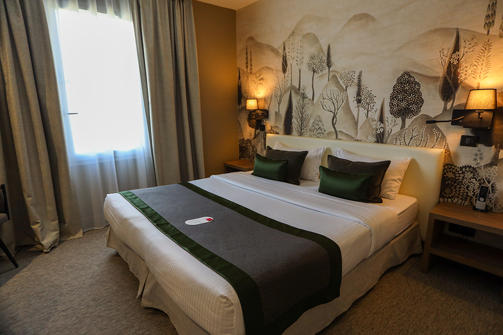 A contemporary hotel that unveils a whole world of serenity. Discover the tranquillity, in a cosy atmosphere in the city! Enjoy the beautiful gardens surrounded by a pond and the swimming pool in summer.